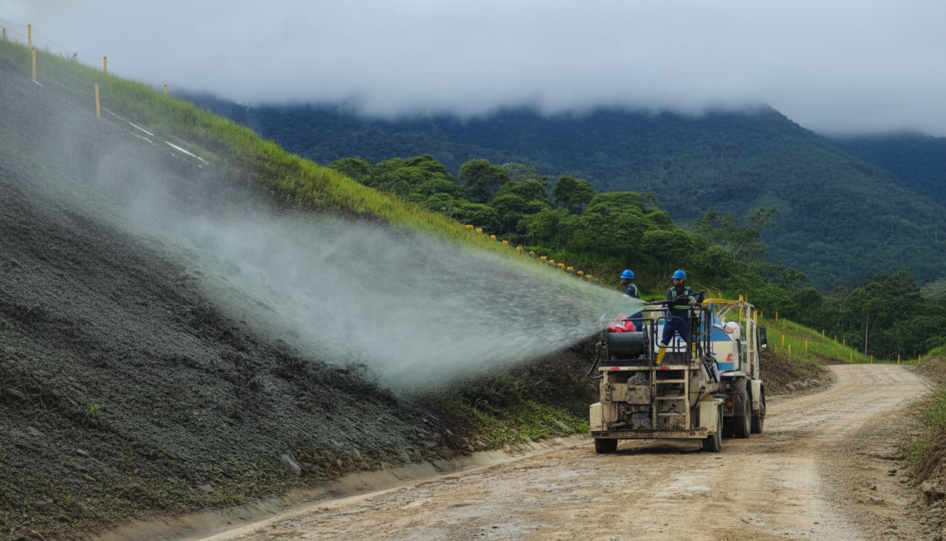 • Hidrosiembra de alta eficiencia para establecer cobertura vegetal y reducir el desgaste del suelo